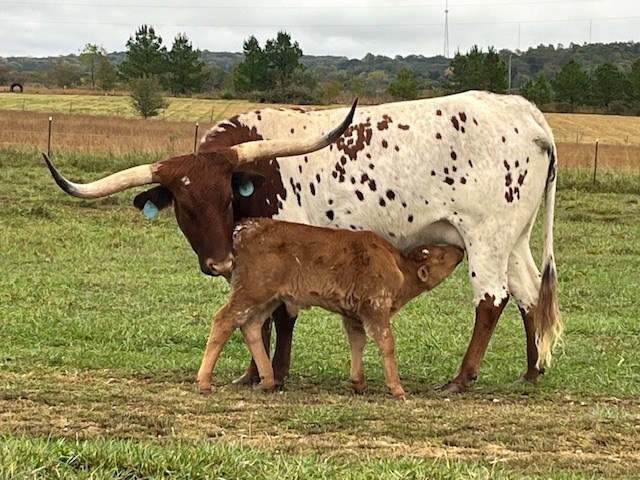 Full Sister to Multiple Futurity Class Winners and Grand Champions...MAE LU SIOUX and SIOUX ZEE SIOUX .. See Dam Progeny ...Gorgeous HUBBELL'S 20 GAUGE daughter directly from a family of Power, conformation, color, and correct maternal traits. Her older sisters are Futurity winners, excellent producers, and have Twisty Horn Measurements approaching 100 inches. DEJA, a great mama, is raising her Fall 2025 DON'T STOP BELIEVIN bull calf, her first. ..Study this family, its Production and Honors...