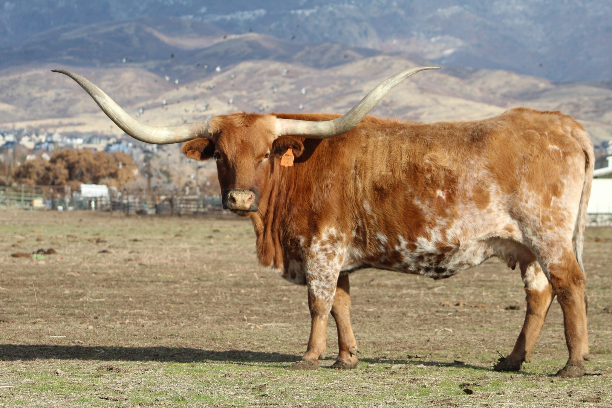 RJF Single Lady is a Single Action daughter with big time genetics. Single Action was a Concealed Weapon son bred by Alex Dees, who tragically died too young in life. His offspring have been incredible! Her dam is Steel Rim Rock, who is a Rim Rock daughter on top of Bob Loomis breeding, that sold for $28,000 at the 2016 Horn Showcase. Steel Rim Rock is now over 96.625" tip-to-tip. Single Lady is stacked with big horned cattle in her pedigree. She has 4 over 80’s (Concealed Weapon, Rim Rock, Rio Grande and Horizon) and 2 over 90’s (Horshoe J Example and her dam, Steel Rim Rock). She gave us our best heifer in 2019, a beautiful Gold Mine daughter we think is real special, named Golden Lady. She then gave us a beautiful heifer out our Triple Horn Showcase Champion, Cowboy Flair in the spring of 2021, who we named Lady May. Next was her Gold Mine 1 bull, DSCC Suncance Kid, born in June 2022, that is the nicest bull we've had born on the ranch in a LONG time!!! Single Lady then gave us a Rebel HR heifer calf born on June 27, 2023 who is stunning! She seems to click with every bull we put her with. Single Lady was AI'd to MC Hangin Tuff on 9/30/2023.